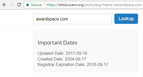 It is important to mention that we set an earlier expiration date on all domain names in our system. For instance, if you had a domain registered on May 6th, the expiration date that would appear in your AwardSpace Control Panel is May 1st (while the actual expiry date would remain 6th of May). The reason behind the idea of taking 5 days off is to give our clients more time to renew their domain registration and to avoid a domain lapse.