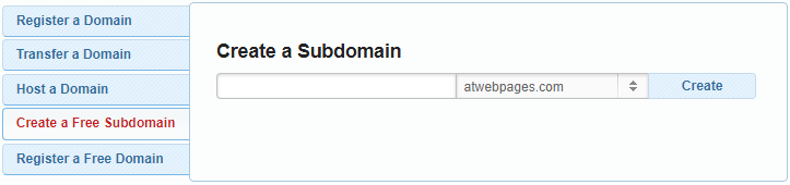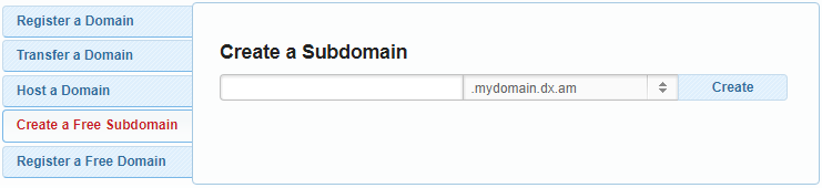 - Go to the Domain Manager page and select the Create a Free Subdomain tab.