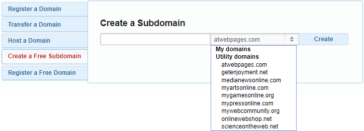 There are many options you can choose from. Below we’ve listed some of the domain names you’re able to register a sub-domain name with:
