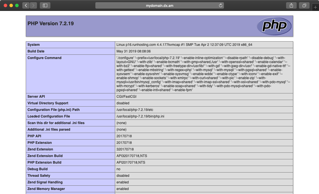 http://your-domain.com/info.php. Make sure that you replaceyour-domain.comwith your actual domain name. The end result should look like the page, shown in the screenshot below: