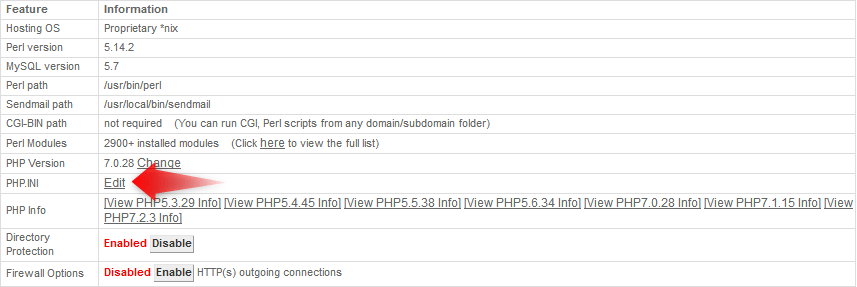 Ability to Change the php.ini Version on the Server