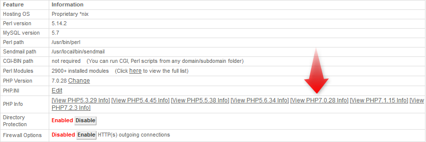 To view the default PHP information for a given PHP version, click on the corresponding link.