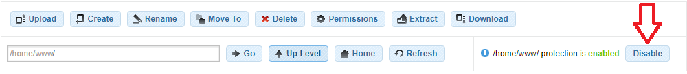 Note: If you wish to create files and folders in the root directory of your account (/home/www/), you would need to disable the /home/www/ protection first.