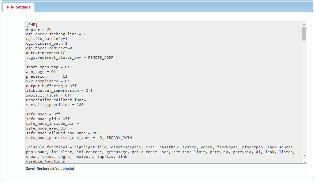 A new window will appear allowing you to edit the current server’s PHP configuration.