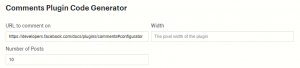 Go to the official Facebook Comment developer page. Once there, configure the settings of your comment section. That is to configure the width, and the number of posts you would like to be shown before the user looks for more.