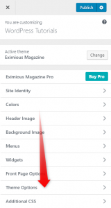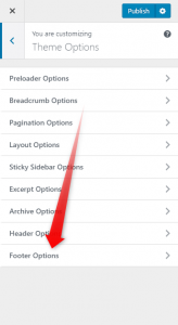 When you go to the theme customizing page, what you need to do, is to look around, and find out, whether the theme chosen by you, is offering you the opportunity to change any Theme Options or Footer Options. Look around. Is there anything that suggests that you’ll be able to edit the footer? Bear in mind that the footer might be called the bottom, or bottom bar. And, of course, such an option may not be available.