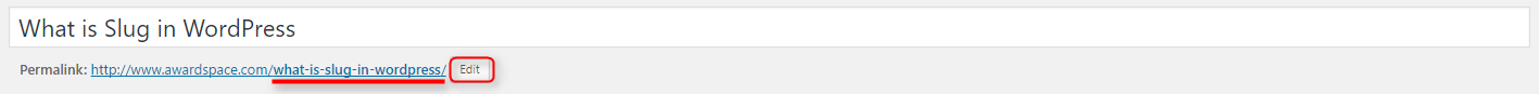 Right next to the link you can see an Edit button. Should you decide to change the automatically generated post slug, click that button and change it to your liking.