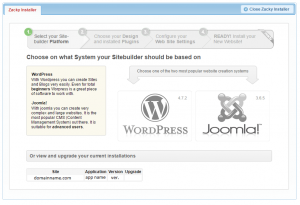 Once you’ve registered an account and entered into the Hosting Control Panel, you’ll see a menu like this. Click on the icon that says “Zacky Installer”