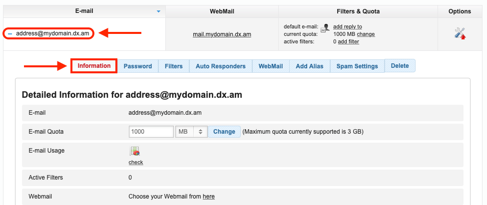 In order to create an email account, you need to have an active web hosting plan. The good news is that mail account creation is supported on both our free web hosting and premium shared hosting subscriptions. In addition to an active hosting plan, a fully-qualified domain name is also required. You can purchase a premium domain name or you can use the Domain Manager section of the Control Panel to register a free .DX.AM domain name.