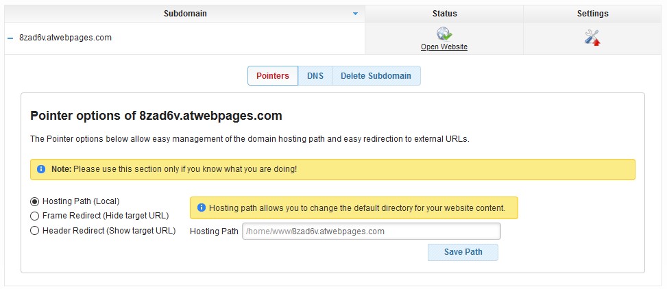 If recreating the directory does not resolve the problem please check if the pointer for the domain/subdomain is set correctly. You can do this from the Domain Manager > Settings > Pointers and check if the Hosting Path (Local) is the correct directory and click Save Path.